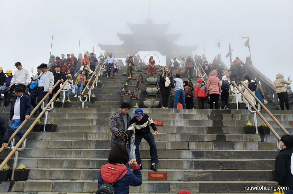 We go there by Monorail train from Sapa station which is located back at our hotel, then continue with cable car for about 15 minuter. Arrive at upper station you can opt for a walk to the top or peak of the mountain or just ride the funicular train that will take you there without hassle like us.